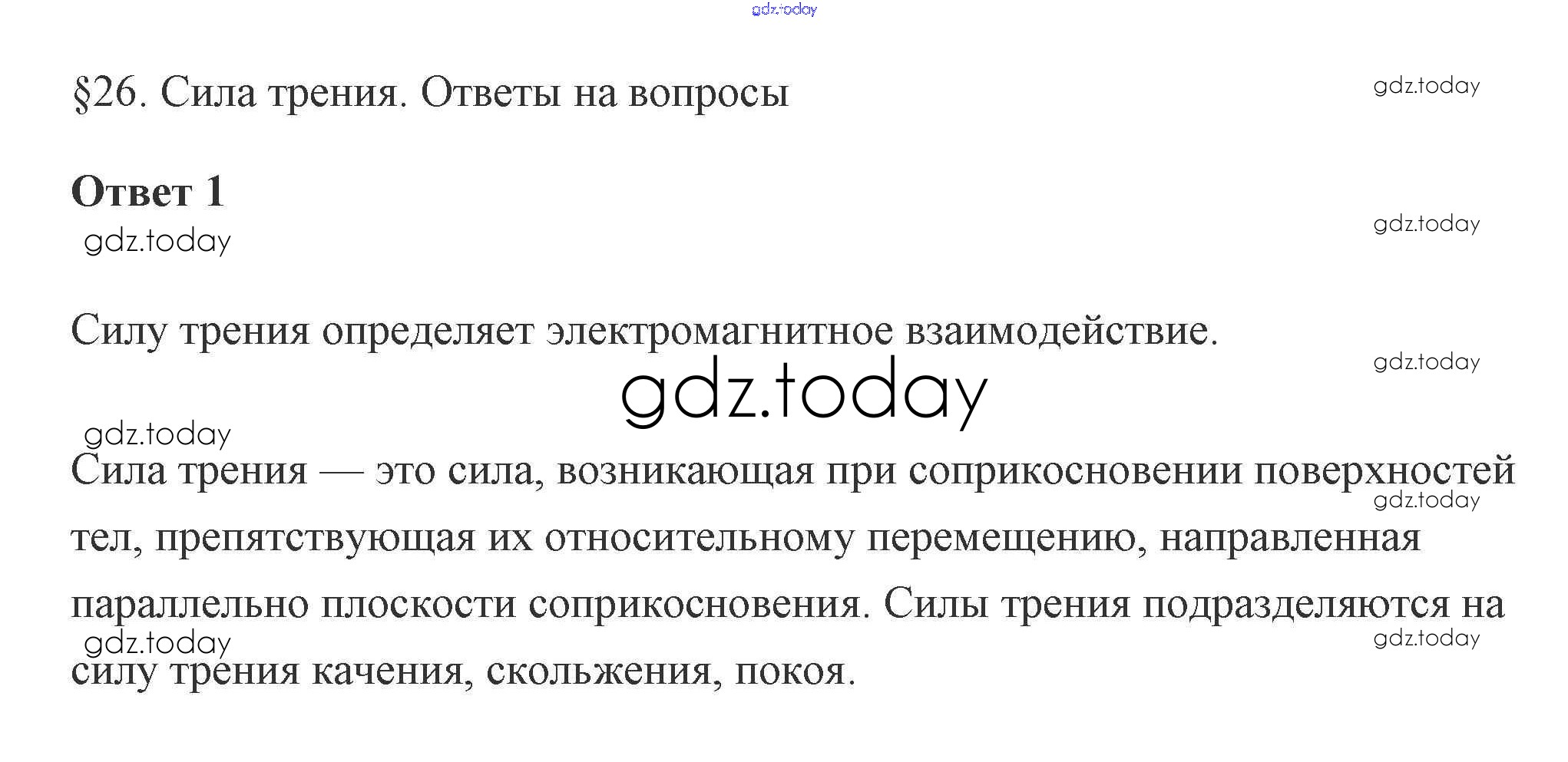 На страницах сайта gdz.today вы найдете учебный и вспомогательный материал, направленный на улучшения знаний школьной программы. ГДЗ - онлайн мир знаний 26. Сила трения 3. Динамика материальной точки 1 Учебнику по Физике для 10 класса Касьянов Дрофа 2018
