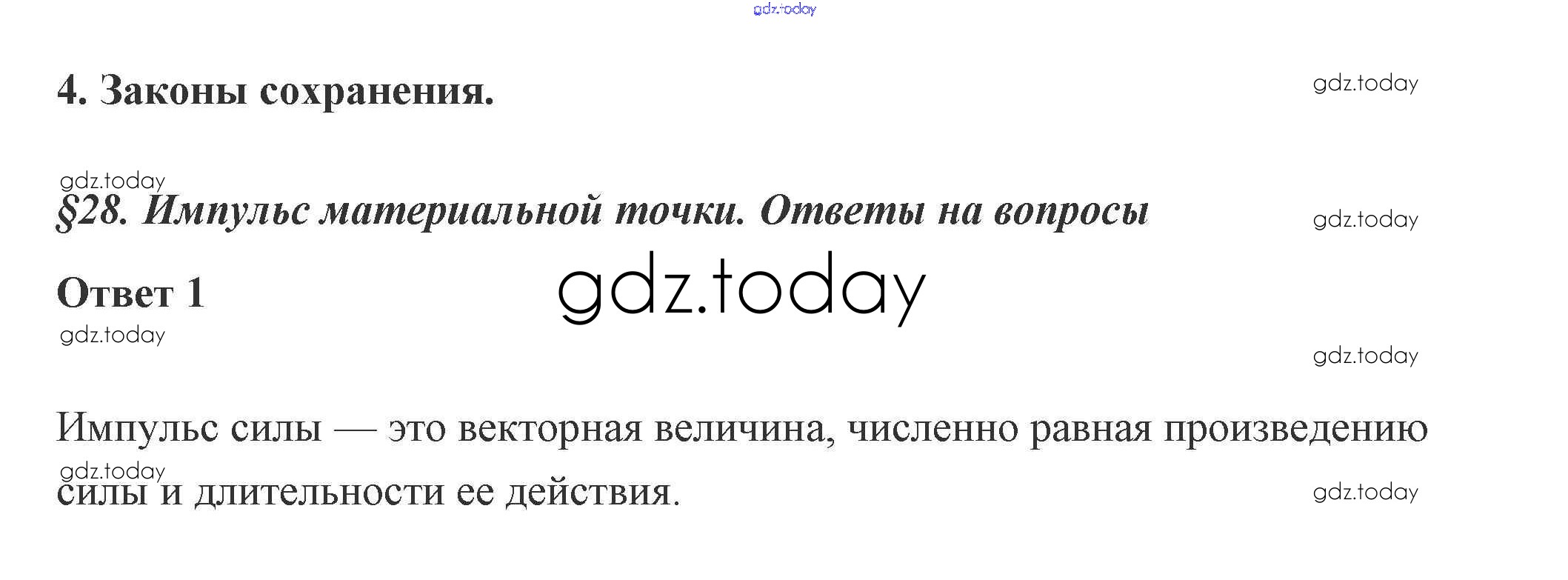 На страницах сайта gdz.today вы найдете учебный и вспомогательный материал, направленный на улучшения знаний школьной программы. ГДЗ - онлайн мир знаний 28. Импульс материальной точки 4. Законы сохранения 1 Учебнику по Физике для 10 класса Касьянов Дрофа 2018