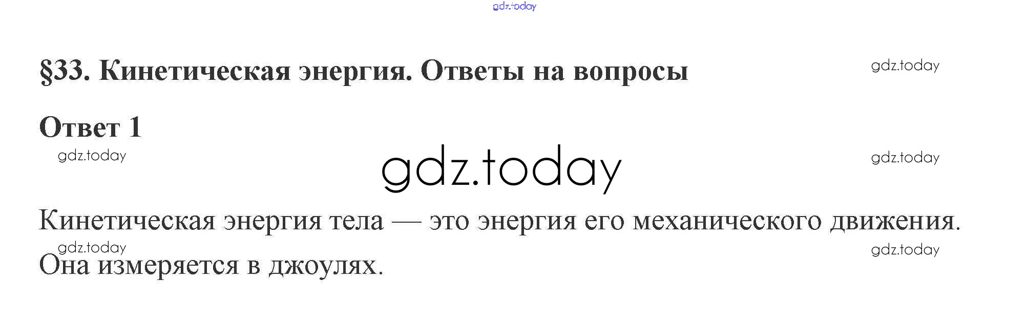 На страницах сайта gdz.today вы найдете учебный и вспомогательный материал, направленный на улучшения знаний школьной программы. ГДЗ - онлайн мир знаний 33. Кинетическая энергия 4. Законы сохранения 1 Учебнику по Физике для 10 класса Касьянов Дрофа 2018
