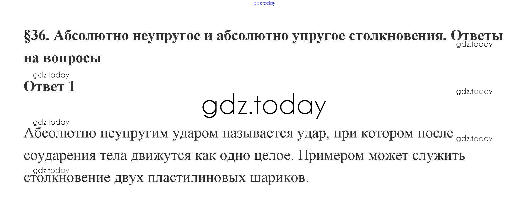 На страницах сайта gdz.today вы найдете учебный и вспомогательный материал, направленный на улучшения знаний школьной программы. ГДЗ - онлайн мир знаний 36. Абсолютно неупругое и абсолютно упругое столкновения 4. Законы сохранения 1 Учебнику по Физике для 10 класса Касьянов Дрофа 2018