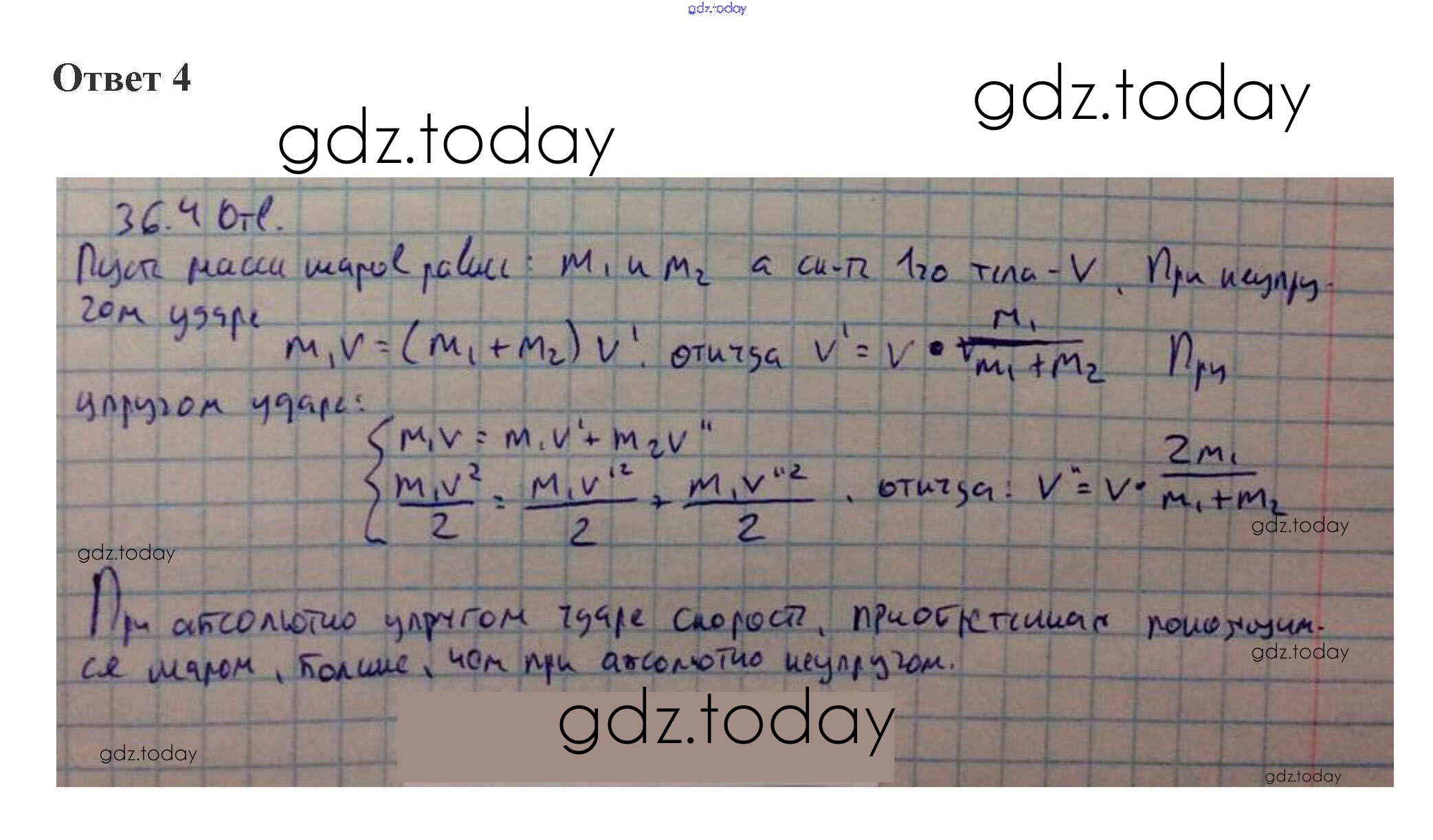 На страницах сайта gdz.today вы найдете учебный и вспомогательный материал, направленный на улучшения знаний школьной программы. ГДЗ - онлайн мир знаний 36. Абсолютно неупругое и абсолютно упругое столкновения 4. Законы сохранения 4 Учебнику по Физике для 10 класса Касьянов Дрофа 2018