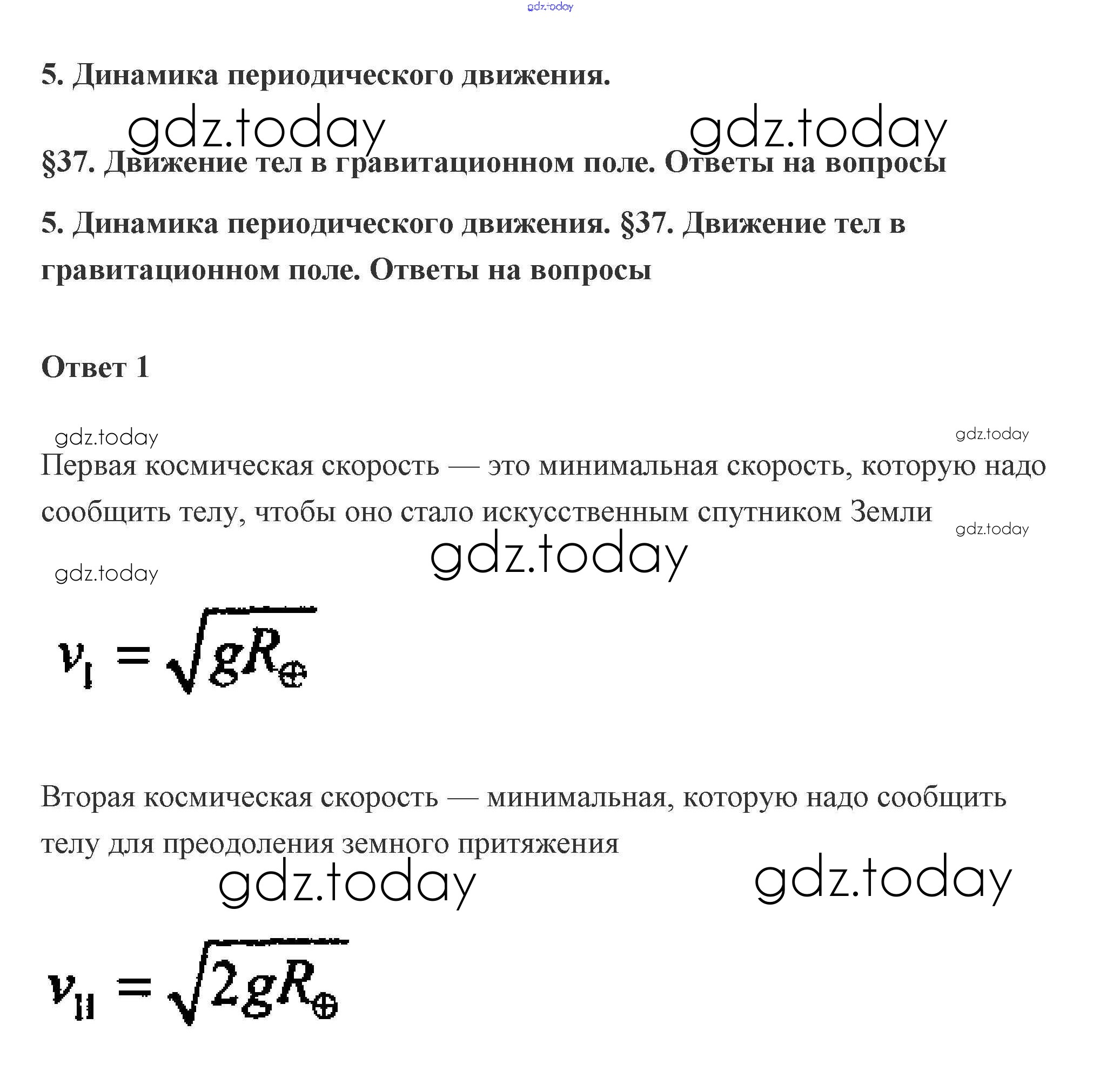 На страницах сайта gdz.today вы найдете учебный и вспомогательный материал, направленный на улучшения знаний школьной программы. ГДЗ - онлайн мир знаний 37. Движение тел в гравитационном поле 5. Динамика периодического движения 1 Учебнику по Физике для 10 класса Касьянов Дрофа 2018
