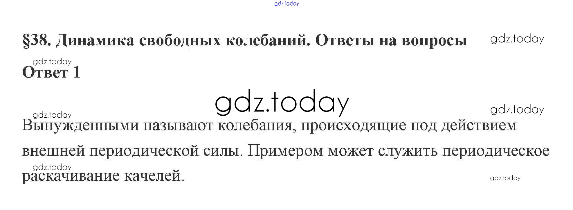 На страницах сайта gdz.today вы найдете учебный и вспомогательный материал, направленный на улучшения знаний школьной программы. ГДЗ - онлайн мир знаний 38. Динамика свободных колебаний 5. Динамика периодического движения 1 Учебнику по Физике для 10 класса Касьянов Дрофа 2018