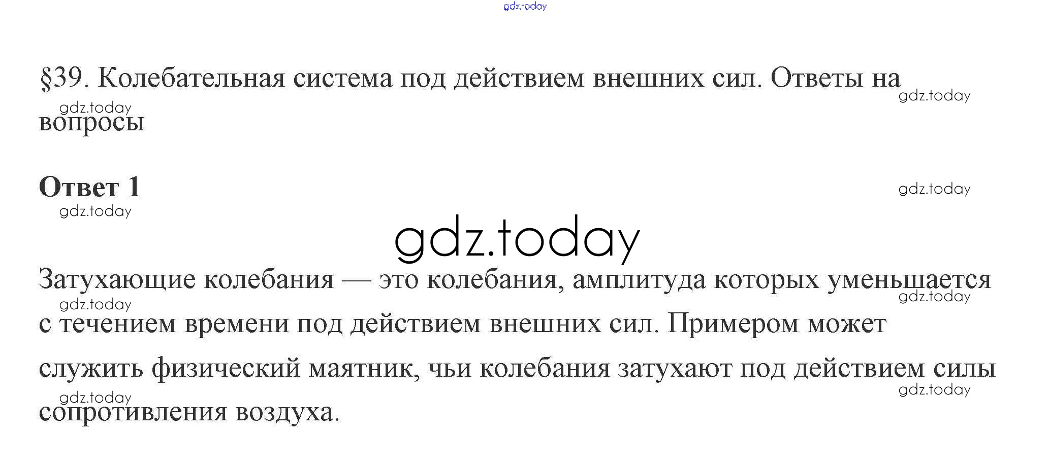 На страницах сайта gdz.today вы найдете учебный и вспомогательный материал, направленный на улучшения знаний школьной программы. ГДЗ - онлайн мир знаний 39. Колебательная система под действием внешних сил 5. Динамика периодического движения 1 Учебнику по Физике для 10 класса Касьянов Дрофа 2018