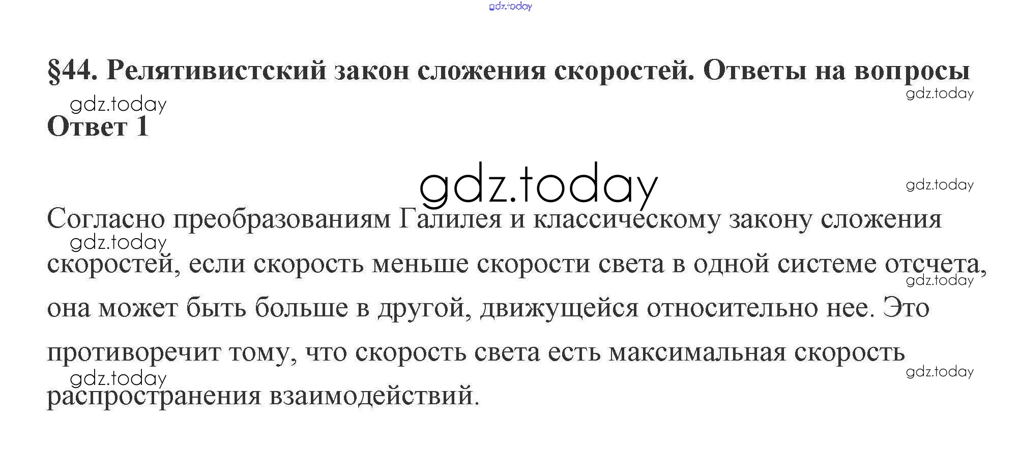 На страницах сайта gdz.today вы найдете учебный и вспомогательный материал, направленный на улучшения знаний школьной программы. ГДЗ - онлайн мир знаний 44. Релятивистский закон сложения скоростей 6. Релятивистская механика 1 Учебнику по Физике для 10 класса Касьянов Дрофа 2018