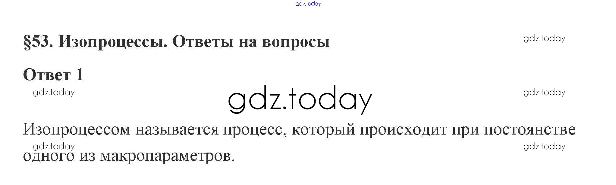 На страницах сайта gdz.today вы найдете учебный и вспомогательный материал, направленный на улучшения знаний школьной программы. ГДЗ - онлайн мир знаний 53. Изопроцессы 8. Молекулярно-кинетическая теория идеального газа 1 Учебнику по Физике для 10 класса Касьянов Дрофа 2018