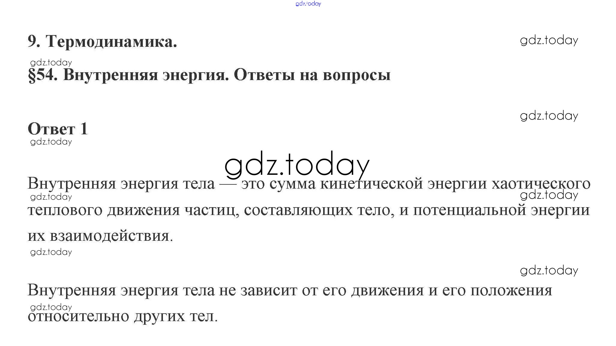 На страницах сайта gdz.today вы найдете учебный и вспомогательный материал, направленный на улучшения знаний школьной программы. ГДЗ - онлайн мир знаний 54. Внутренняя энергия 9. Термодинамика 1 Учебнику по Физике для 10 класса Касьянов Дрофа 2018