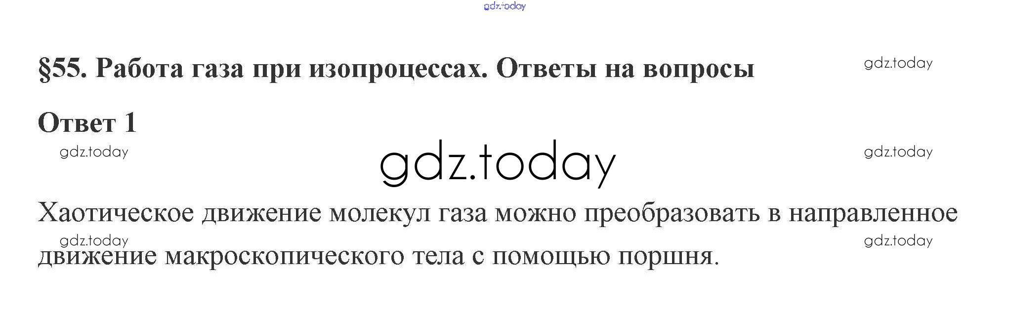 На страницах сайта gdz.today вы найдете учебный и вспомогательный материал, направленный на улучшения знаний школьной программы. ГДЗ - онлайн мир знаний 55. Работа газа при изопроцессах 9. Термодинамика 1 Учебнику по Физике для 10 класса Касьянов Дрофа 2018