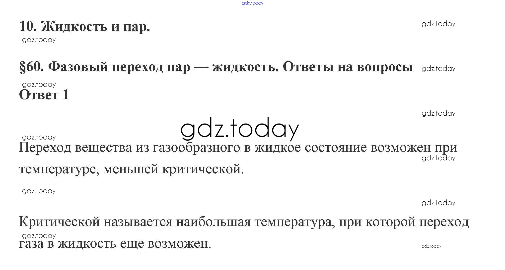 Ответы к 60. Фазовый переход пар — жидкость 10. Жидкость и пар 1 Учебнику по Физике для 10 класса Касьянов Дрофа 2018