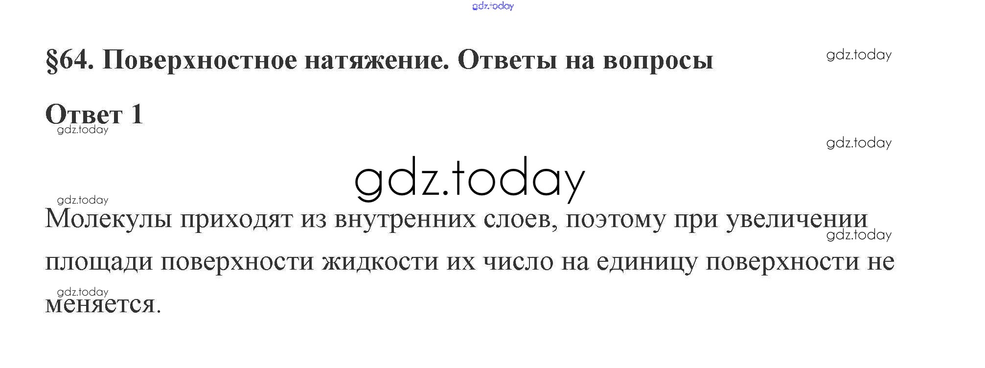 На страницах сайта gdz.today вы найдете учебный и вспомогательный материал, направленный на улучшения знаний школьной программы. ГДЗ - онлайн мир знаний 64. Поверхностное натяжение 10. Жидкость и пар 1 Учебнику по Физике для 10 класса Касьянов Дрофа 2018