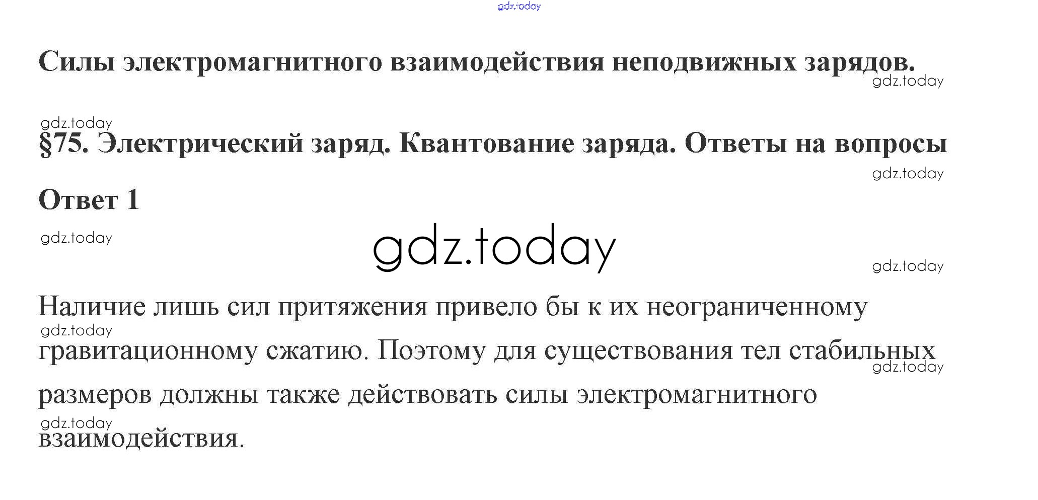 На страницах сайта gdz.today вы найдете учебный и вспомогательный материал, направленный на улучшения знаний школьной программы. ГДЗ - онлайн мир знаний 75. Электрический заряд. Квантование заряда 13. Силы электромагнитного взаимодействия неподвижных зарядов 1 Учебнику по Физике для 10 класса Касьянов Дрофа 2018