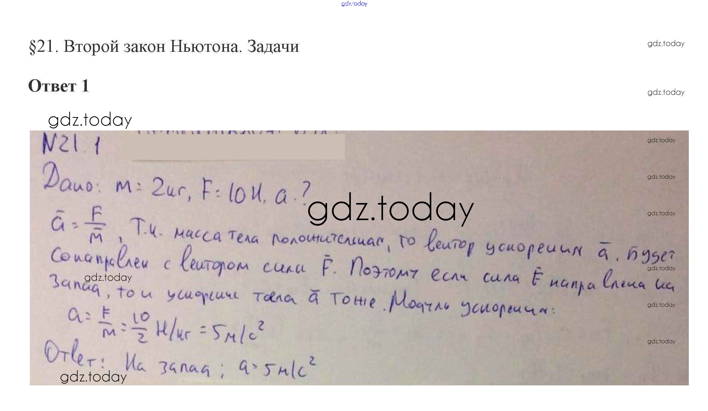 На страницах сайта gdz.today вы найдете учебный и вспомогательный материал, направленный на улучшения знаний школьной программы. ГДЗ - онлайн мир знаний 21. Второй закон Ньютона 3. Динамика материальной точки 1 Учебнику по Физике для 10 класса Касьянов Дрофа 2018