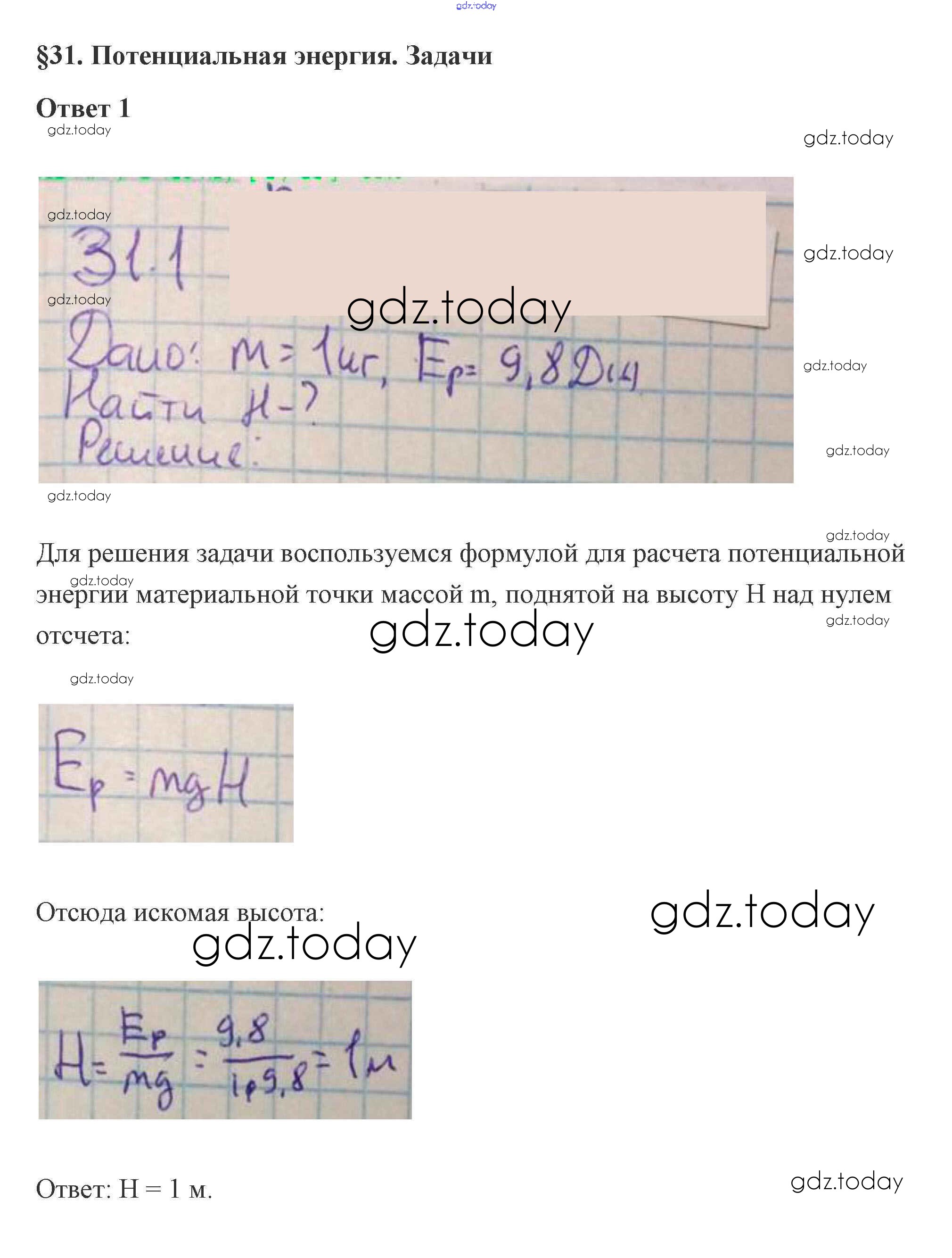 На страницах сайта gdz.today вы найдете учебный и вспомогательный материал, направленный на улучшения знаний школьной программы. ГДЗ - онлайн мир знаний 31. Потенциальная энергия 4. Законы сохранения 1 Учебнику по Физике для 10 класса Касьянов Дрофа 2018