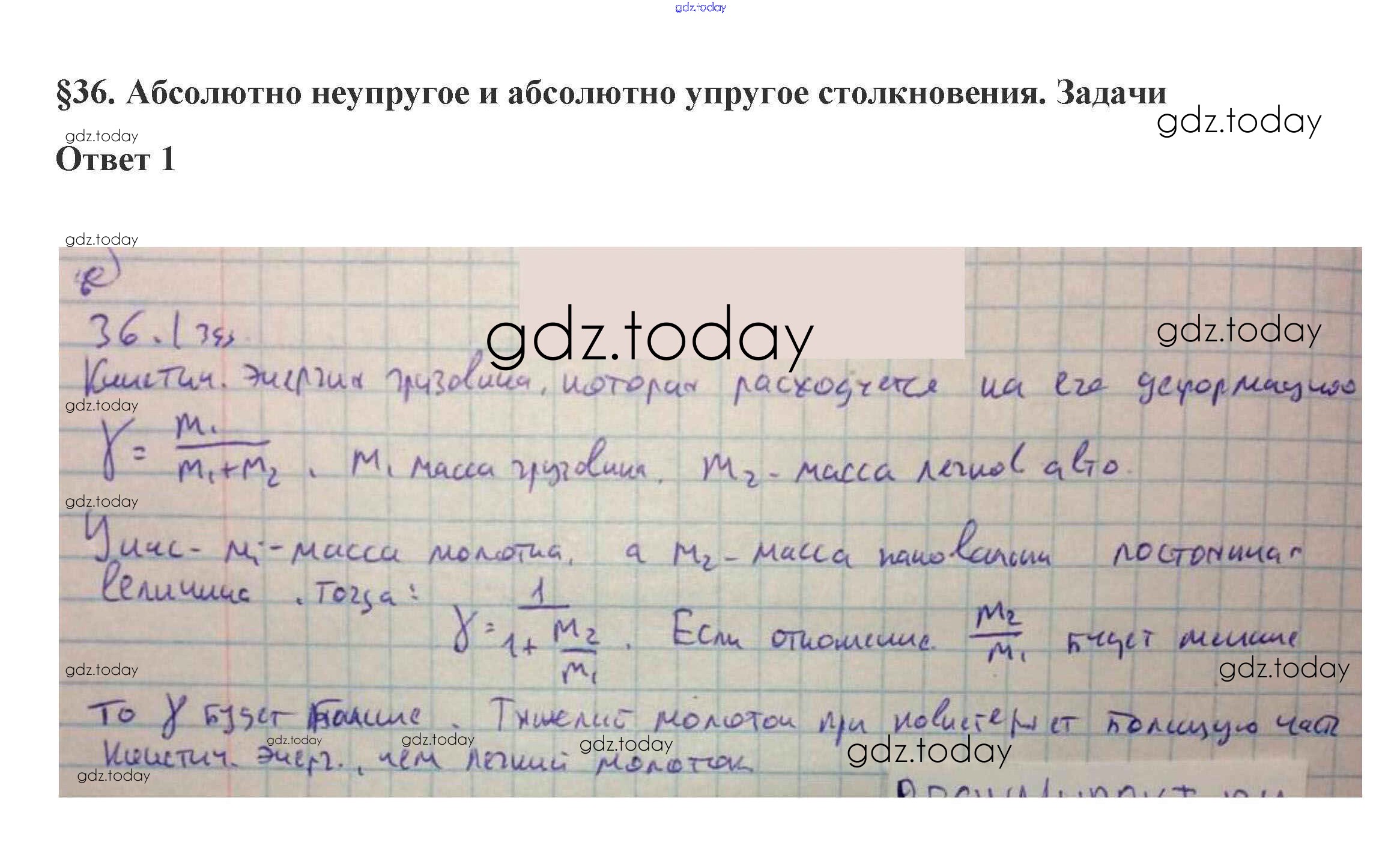 На страницах сайта gdz.today вы найдете учебный и вспомогательный материал, направленный на улучшения знаний школьной программы. ГДЗ - онлайн мир знаний 36. Абсолютно неупругое и абсолютно упругое столкновения 4. Законы сохранения 1 Учебнику по Физике для 10 класса Касьянов Дрофа 2018