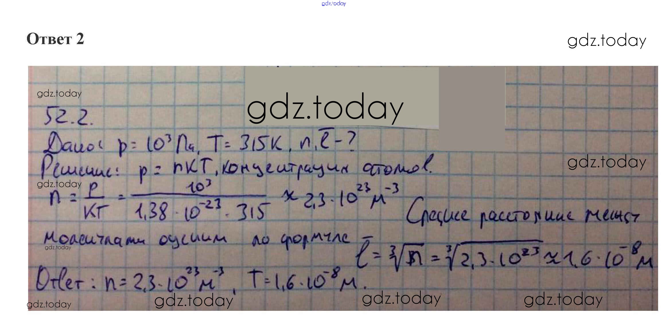 Ответы к 52. Уравнение Клапейрона-Менделеева 8. Молекулярно-кинетическая теория идеального газа 2 Учебнику по Физике для 10 класса Касьянов Дрофа 2018