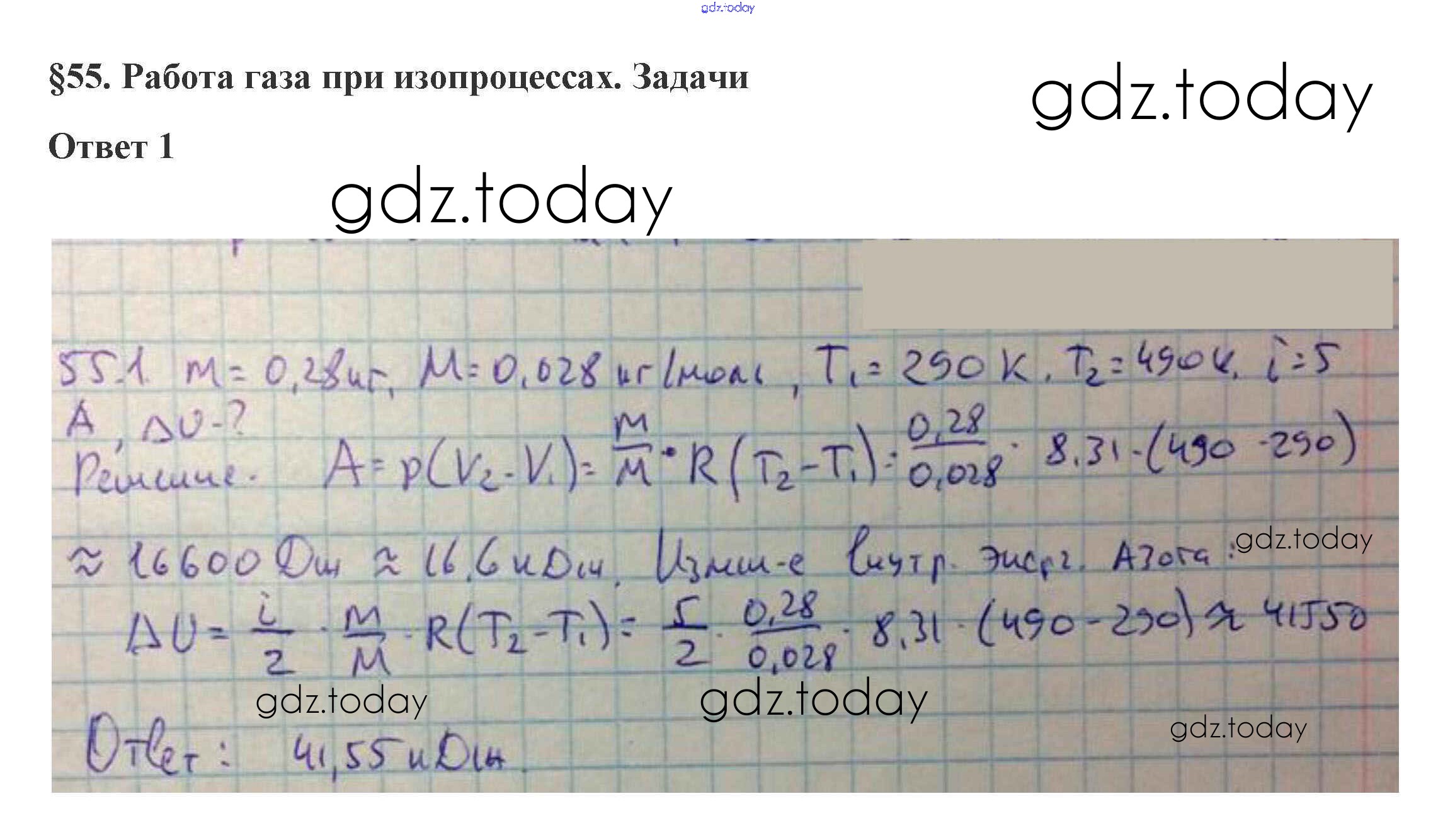 На страницах сайта gdz.today вы найдете учебный и вспомогательный материал, направленный на улучшения знаний школьной программы. ГДЗ - онлайн мир знаний 55. Работа газа при изопроцессах 9. Термодинамика 1 Учебнику по Физике для 10 класса Касьянов Дрофа 2018