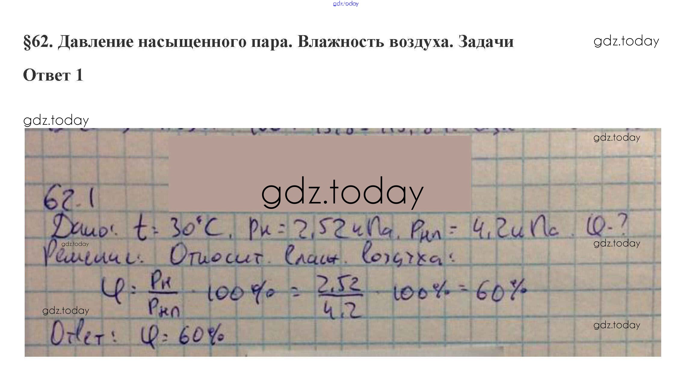 На страницах сайта gdz.today вы найдете учебный и вспомогательный материал, направленный на улучшения знаний школьной программы. ГДЗ - онлайн мир знаний 62. Давление насыщенного пара 10. Жидкость и пар 1 Учебнику по Физике для 10 класса Касьянов Дрофа 2018