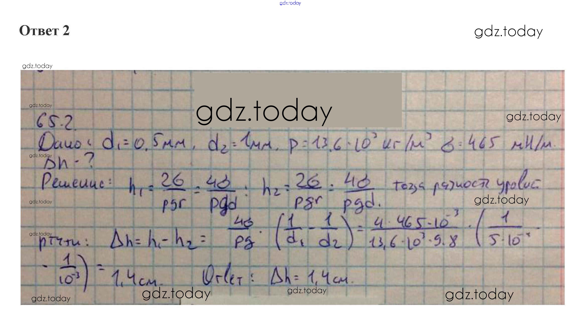 Ответы к 65. Смачивание. Капиллярность 10. Жидкость и пар 2 Учебнику по Физике для 10 класса Касьянов Дрофа 2018