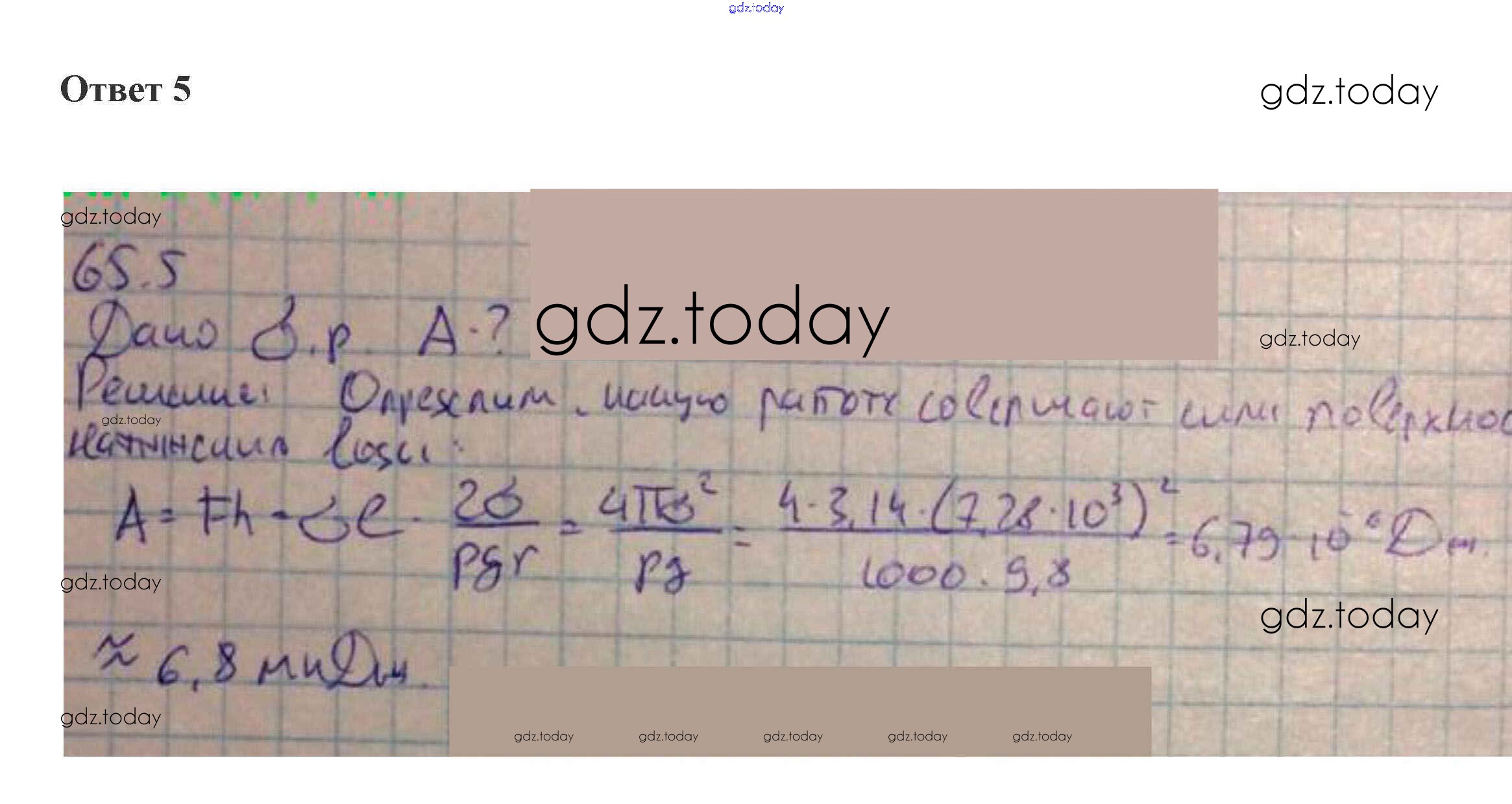 Ответы к 65. Смачивание. Капиллярность 10. Жидкость и пар 5 Учебнику по Физике для 10 класса Касьянов Дрофа 2018