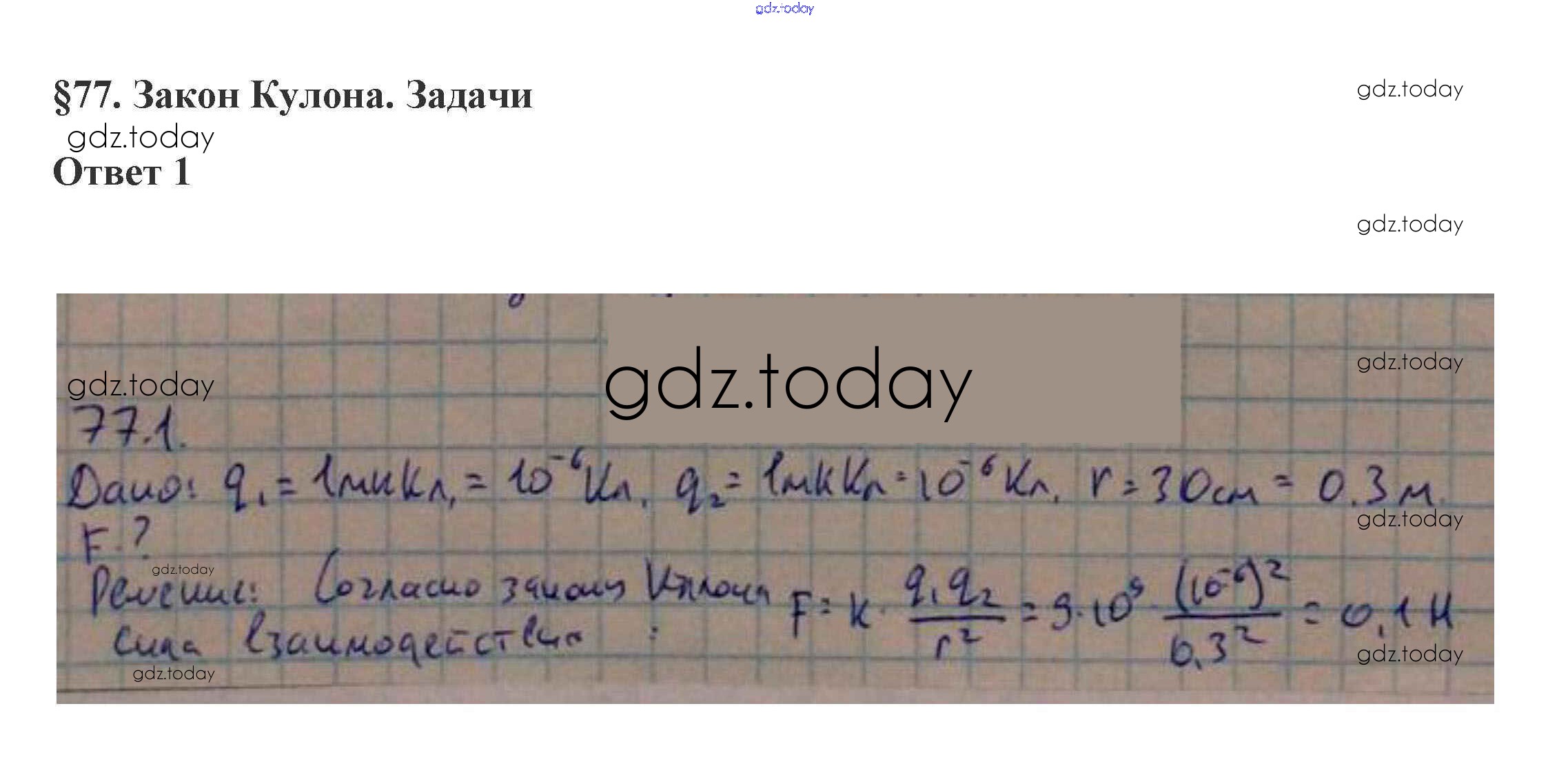 На страницах сайта gdz.today вы найдете учебный и вспомогательный материал, направленный на улучшения знаний школьной программы. ГДЗ - онлайн мир знаний 77. Закон Кулона 12 Силы электромагнитного взаимодействия неподвижных заря 1 Учебнику по Физике для 10 класса Касьянов Дрофа 2018