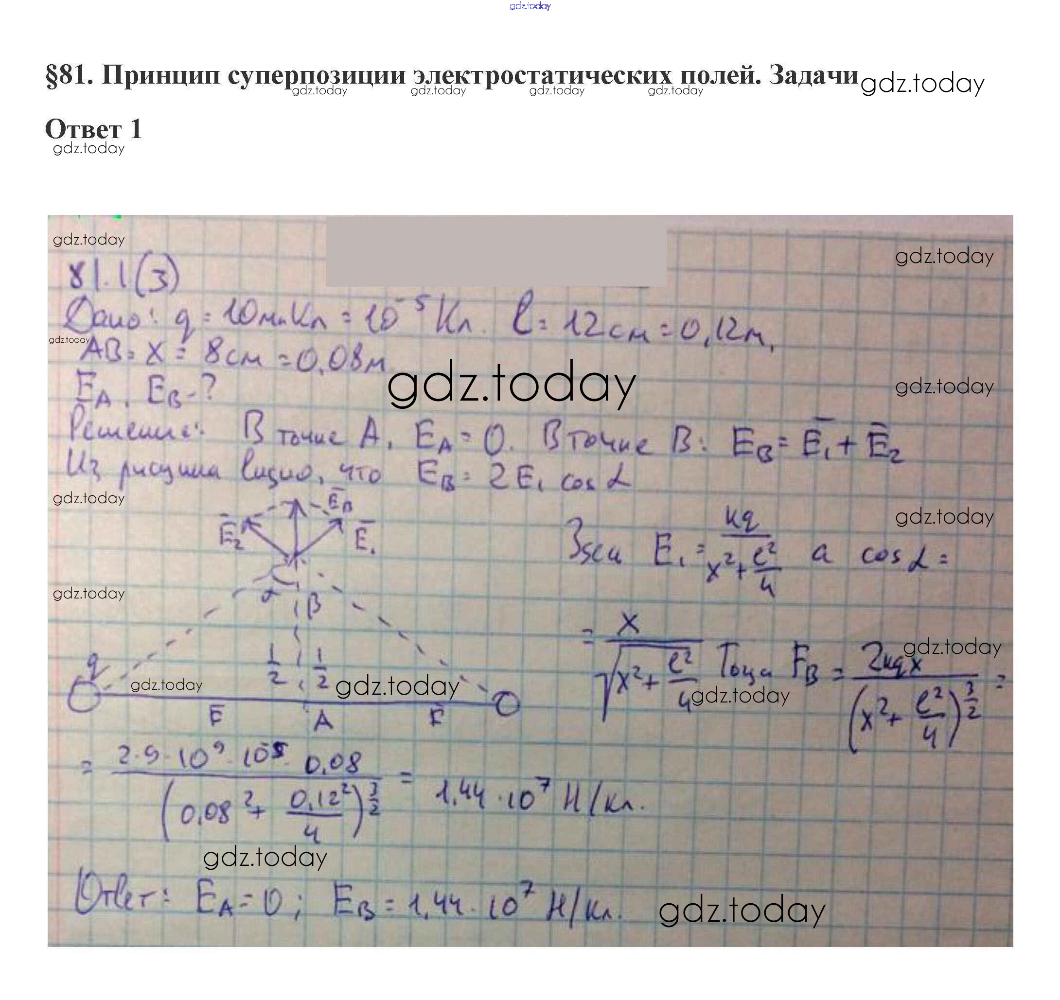 На страницах сайта gdz.today вы найдете учебный и вспомогательный материал, направленный на улучшения знаний школьной программы. ГДЗ - онлайн мир знаний 81. Принцип суперпозиции электростатических полей 12 Силы электромагнитного взаимодействия неподвижных заря 1 Учебнику по Физике для 10 класса Касьянов Дрофа 2018