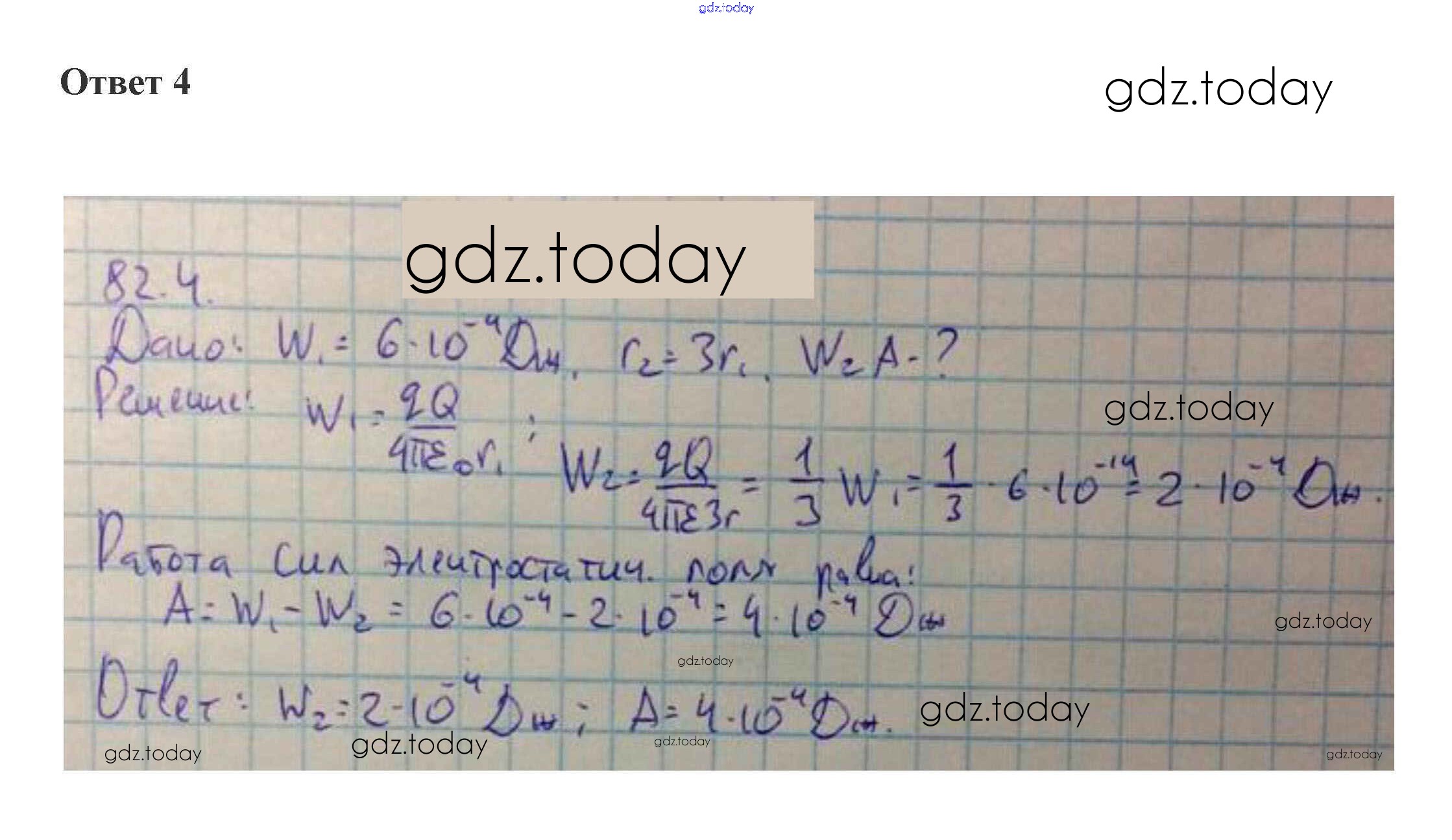 На страницах сайта gdz.today вы найдете учебный и вспомогательный материал, направленный на улучшения знаний школьной программы. ГДЗ - онлайн мир знаний 82. Работа сил электростатического поля 14. Энергия электромагнитного взаимодействия неподвижных зарядов 4 Учебнику по Физике для 10 класса Касьянов Дрофа 2018