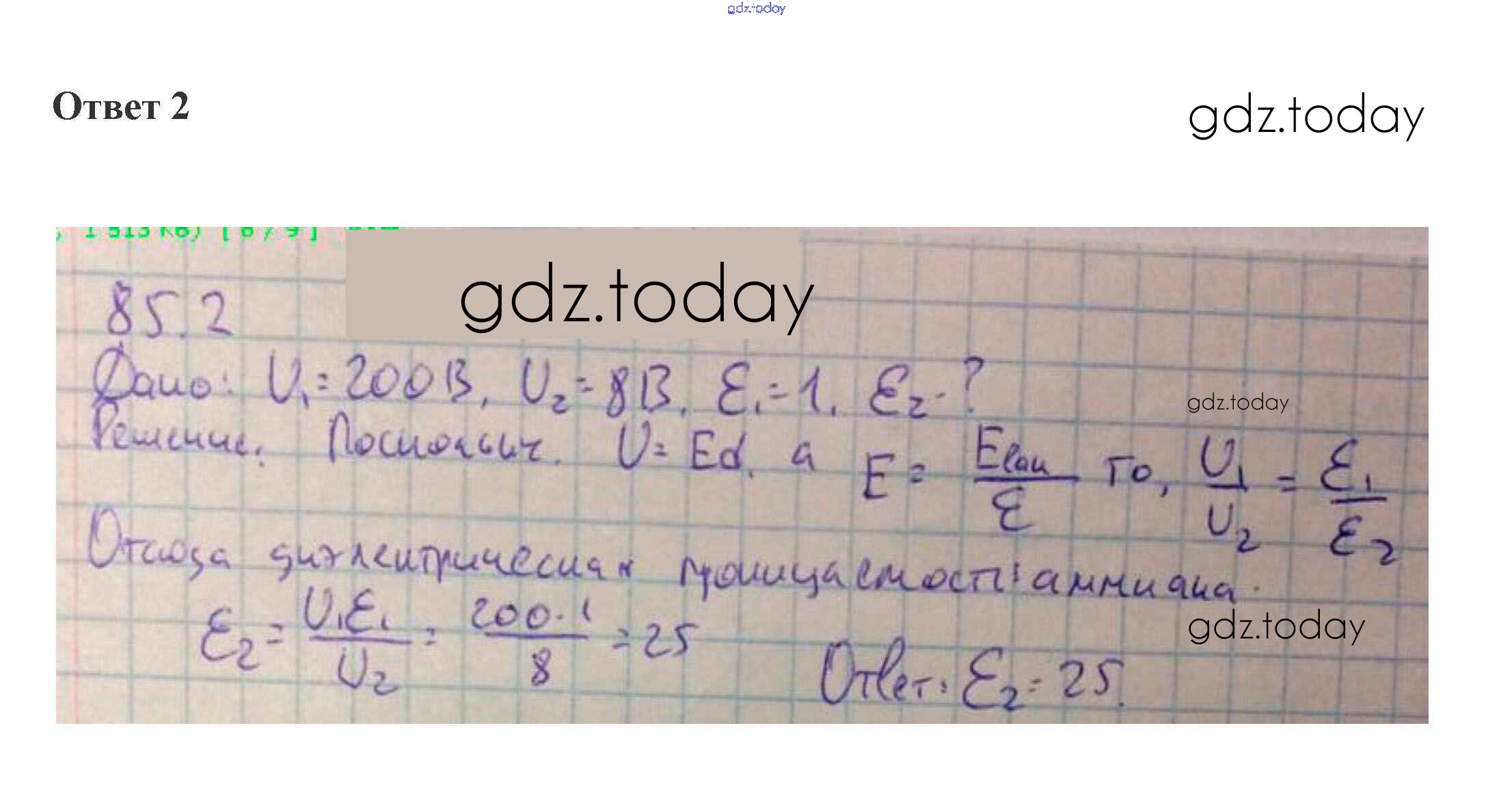 На страницах сайта gdz.today вы найдете учебный и вспомогательный материал, направленный на улучшения знаний школьной программы. ГДЗ - онлайн мир знаний 85. Диэлектрики в электростатическом поле 14. Энергия электромагнитного взаимодействия неподвижных зарядов 2 Учебнику по Физике для 10 класса Касьянов Дрофа 2018