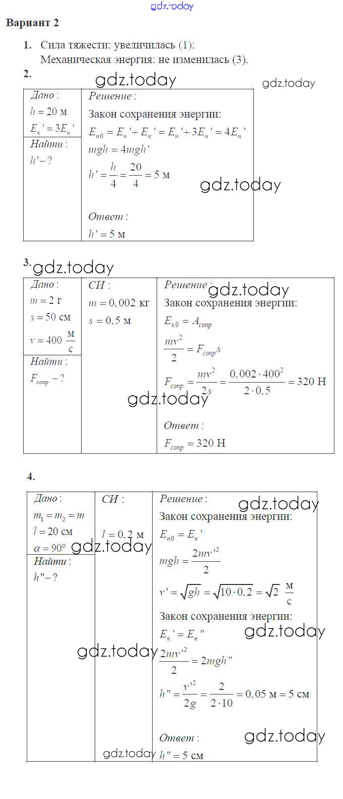 На страницах сайта gdz.today вы найдете учебный и вспомогательный материал, направленный на улучшения знаний школьной программы. ГДЗ - онлайн мир знаний КР Решение к теме "Законы сохранения в механике" 2 Самостоятельным и контрольным работам по Физике для 10 класса Ерюткин, Ерюткина Базовый и углубленный уровень Просвещение 2018