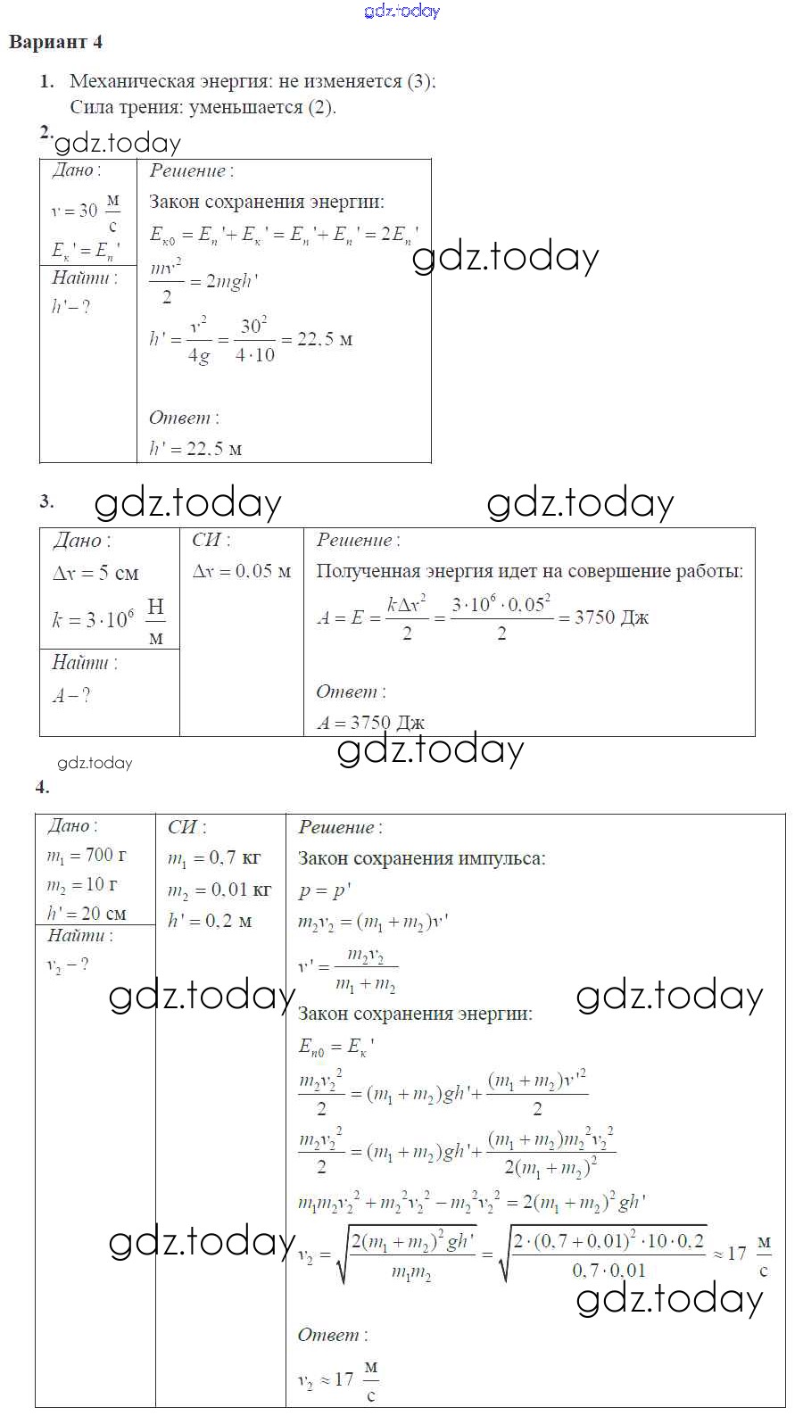 На страницах сайта gdz.today вы найдете учебный и вспомогательный материал, направленный на улучшения знаний школьной программы. ГДЗ - онлайн мир знаний КР Решение к теме "Законы сохранения в механике" 4 Самостоятельным и контрольным работам по Физике для 10 класса Ерюткин, Ерюткина Базовый и углубленный уровень Просвещение 2018