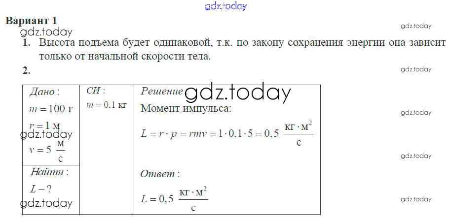 На страницах сайта gdz.today вы найдете учебный и вспомогательный материал, направленный на улучшения знаний школьной программы. ГДЗ - онлайн мир знаний СР №8 Решение к теме "Законы сохранения в механике" 1 Самостоятельным и контрольным работам по Физике для 10 класса Ерюткин, Ерюткина Базовый и углубленный уровень Просвещение 2018