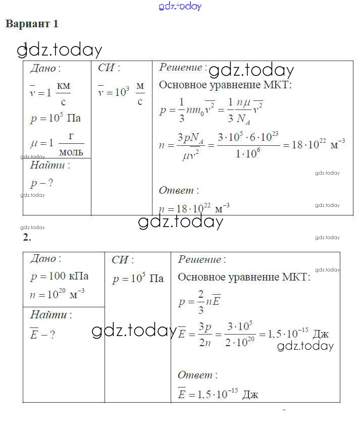 Ответы к СР №2 Решение к теме "Основы мкт" 1 Самостоятельным и контрольным работам по Физике для 10 класса Ерюткин, Ерюткина Базовый и углубленный уровень Просвещение 2018