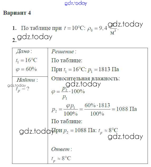 Ответы к СР №5 Решение к теме "Основы мкт" 4 Самостоятельным и контрольным работам по Физике для 10 класса Ерюткин, Ерюткина Базовый и углубленный уровень Просвещение 2018