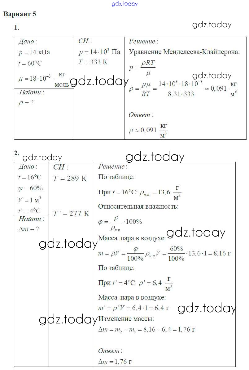 Ответы к СР №5 Решение к теме "Основы мкт" 5 Самостоятельным и контрольным работам по Физике для 10 класса Ерюткин, Ерюткина Базовый и углубленный уровень Просвещение 2018