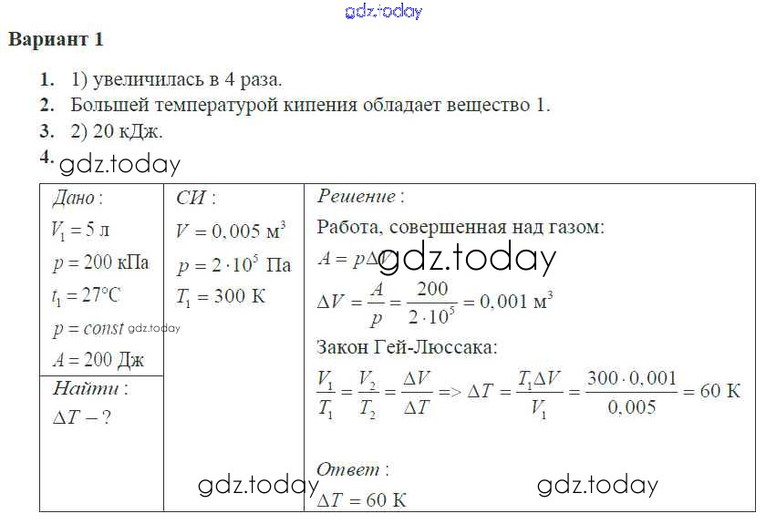 На страницах сайта gdz.today вы найдете учебный и вспомогательный материал, направленный на улучшения знаний школьной программы. ГДЗ - онлайн мир знаний КР Решение к теме "Основы термодинамики" 1 Самостоятельным и контрольным работам по Физике для 10 класса Ерюткин, Ерюткина Базовый и углубленный уровень Просвещение 2018
