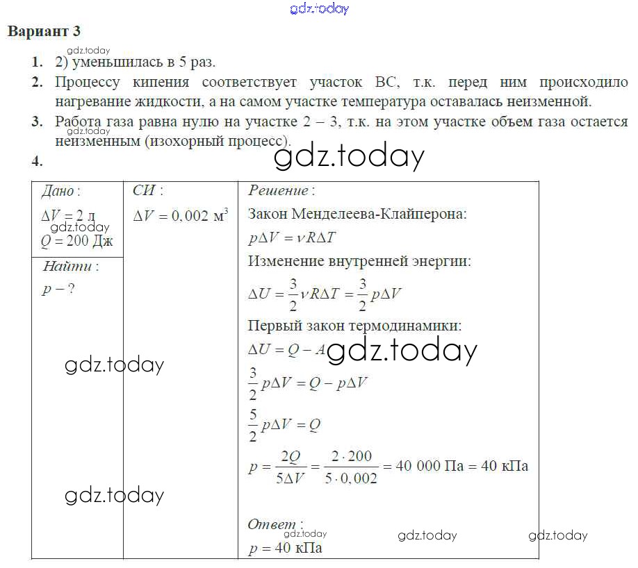На страницах сайта gdz.today вы найдете учебный и вспомогательный материал, направленный на улучшения знаний школьной программы. ГДЗ - онлайн мир знаний КР Решение к теме "Основы термодинамики" 3 Самостоятельным и контрольным работам по Физике для 10 класса Ерюткин, Ерюткина Базовый и углубленный уровень Просвещение 2018