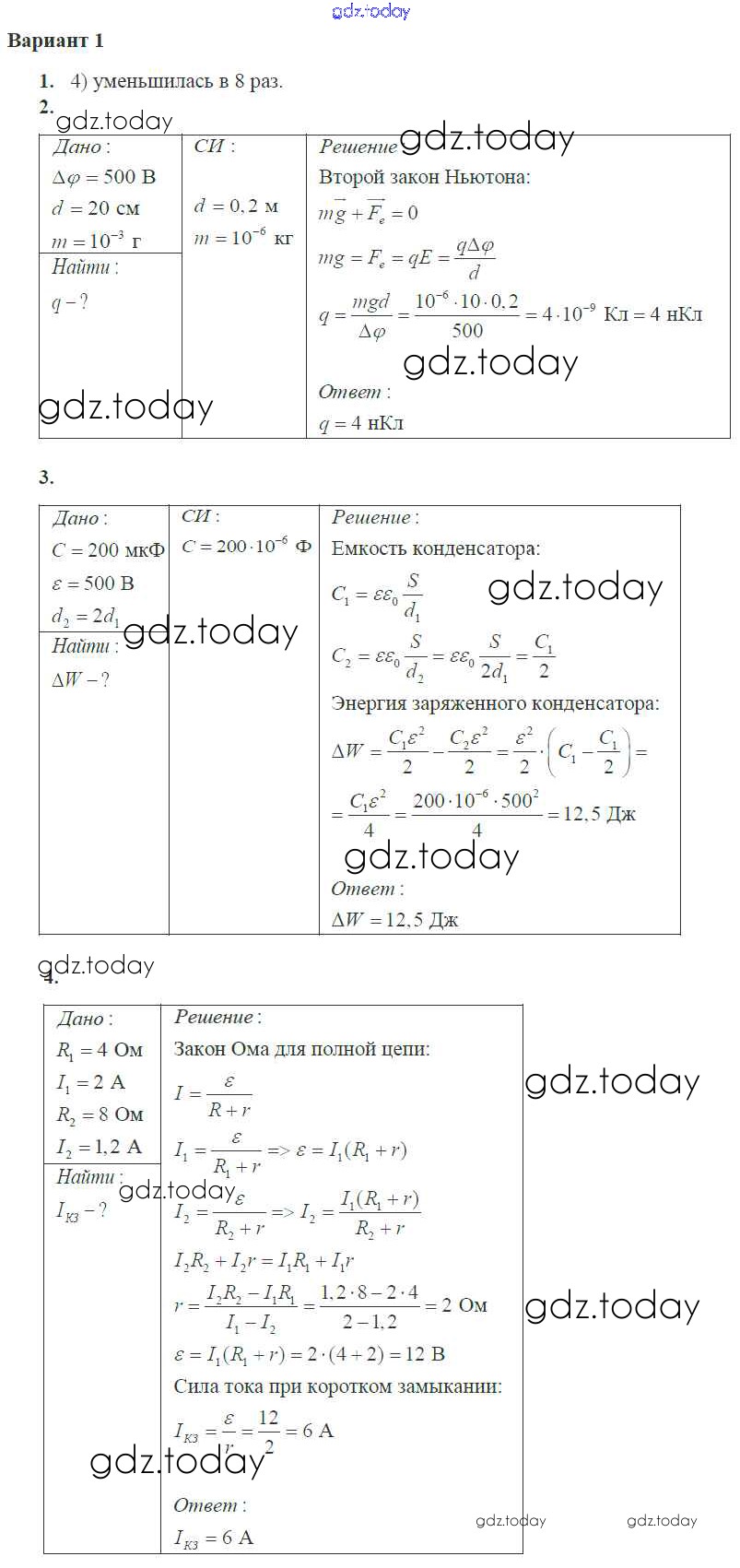На страницах сайта gdz.today вы найдете учебный и вспомогательный материал, направленный на улучшения знаний школьной программы. ГДЗ - онлайн мир знаний КР Решение к теме "Постоянный электрический ток" 1 Самостоятельным и контрольным работам по Физике для 10 класса Ерюткин, Ерюткина Базовый и углубленный уровень Просвещение 2018