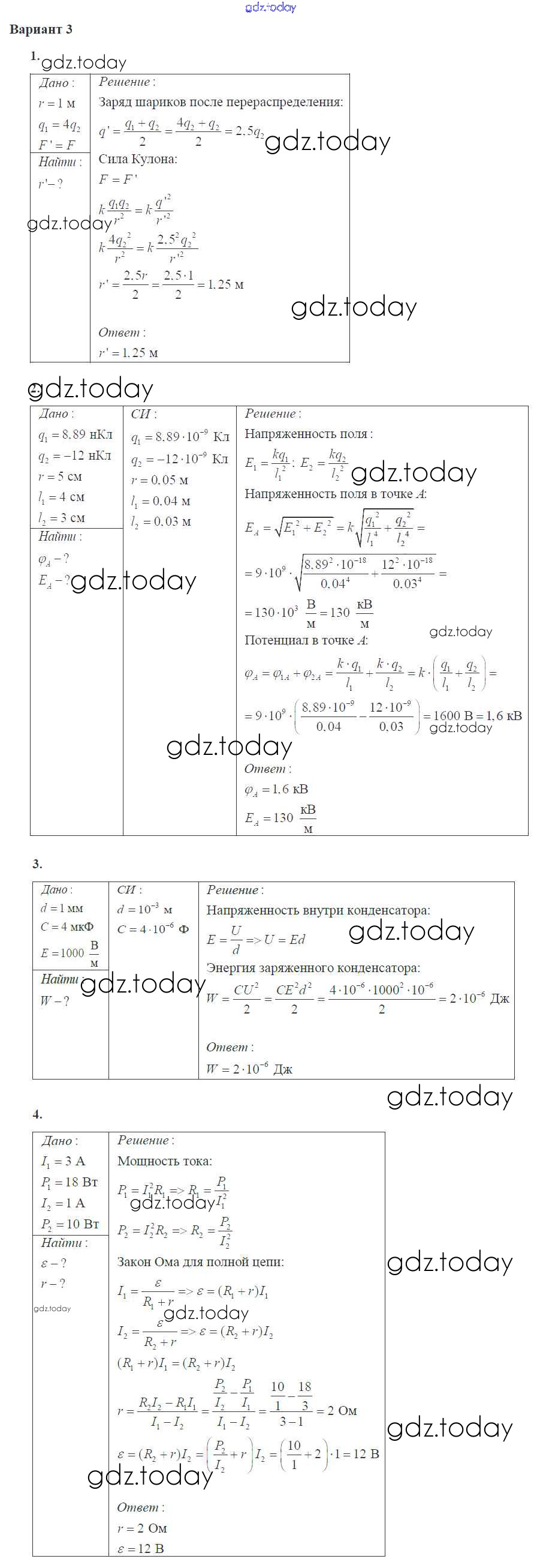На страницах сайта gdz.today вы найдете учебный и вспомогательный материал, направленный на улучшения знаний школьной программы. ГДЗ - онлайн мир знаний КР Решение к теме "Постоянный электрический ток" 3 Самостоятельным и контрольным работам по Физике для 10 класса Ерюткин, Ерюткина Базовый и углубленный уровень Просвещение 2018