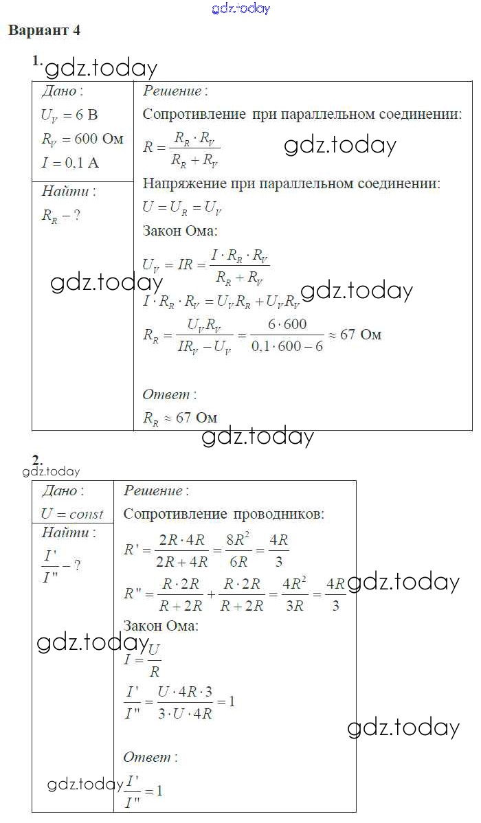 На страницах сайта gdz.today вы найдете учебный и вспомогательный материал, направленный на улучшения знаний школьной программы. ГДЗ - онлайн мир знаний СР №4 Решение к теме "Постоянный электрический ток" 4 Самостоятельным и контрольным работам по Физике для 10 класса Ерюткин, Ерюткина Базовый и углубленный уровень Просвещение 2018