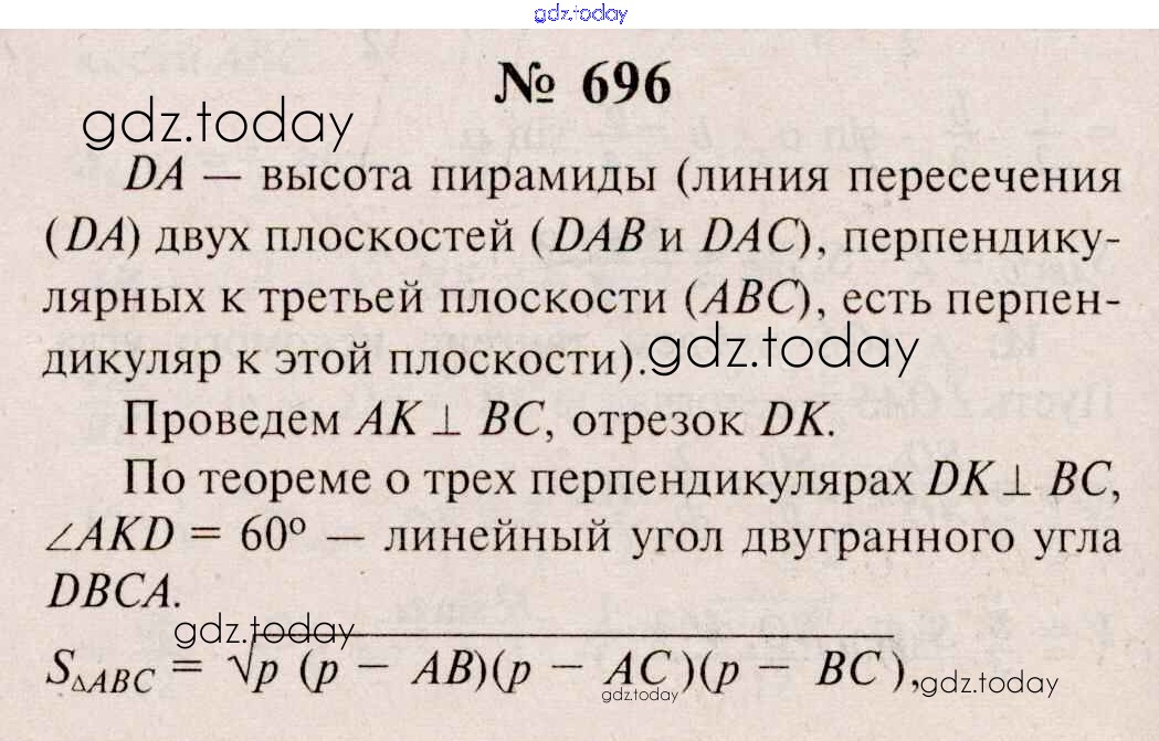 Ответы к Решение. Задачи 696 Учебнику по Геометрии для 10-11 класса Атанасян, Бутузов Базовый и углубленный уровень Просвещение, Просвещение 2015, 2023