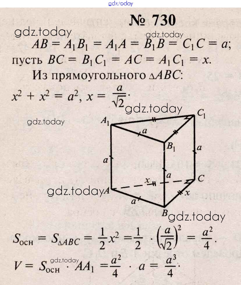 Ответы к Решение. Задачи 730 Учебнику по Геометрии для 10-11 класса Атанасян, Бутузов Базовый и углубленный уровень Просвещение, Просвещение 2015, 2023