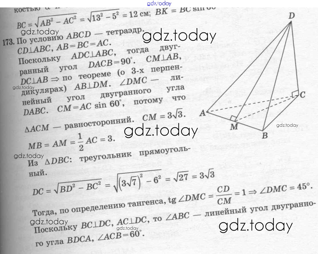 Ответы к Решение. Задачи 173 Учебнику по Геометрии для 10-11 класса Атанасян, Бутузов Базовый и углубленный уровень Просвещение, Просвещение 2015, 2023
