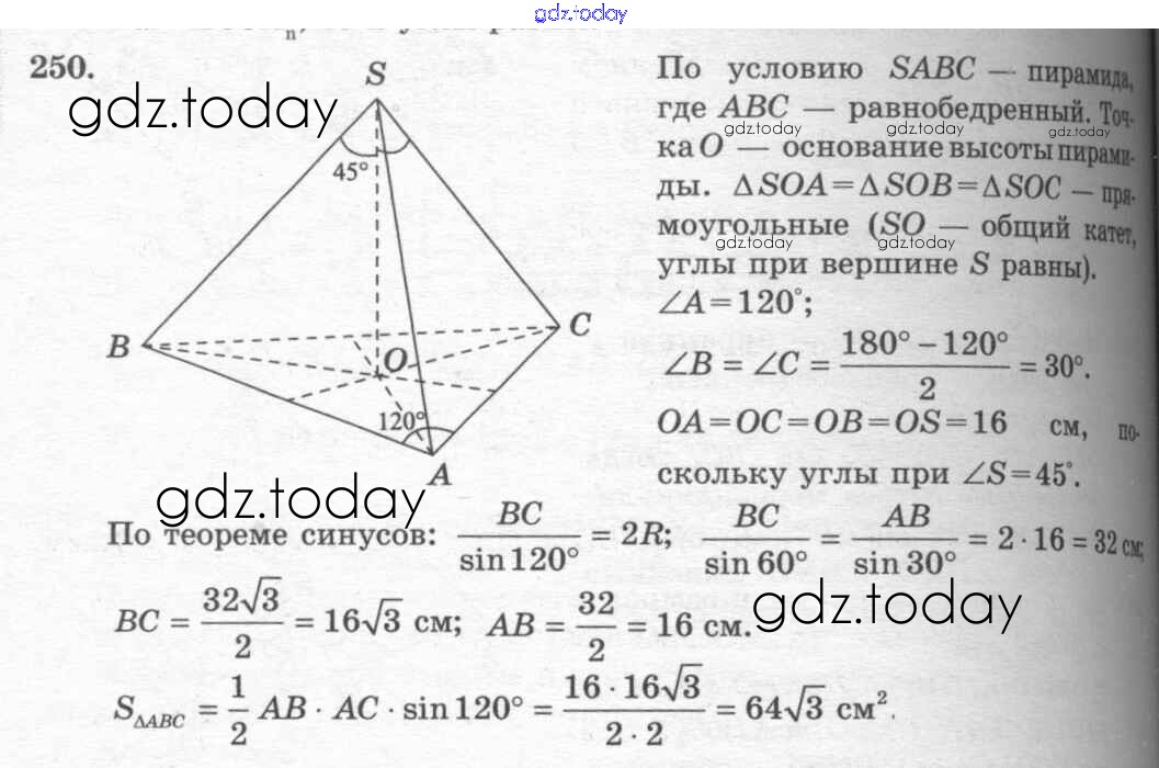 Ответы к Решение. Задачи 250 Учебнику по Геометрии для 10-11 класса Атанасян, Бутузов Базовый и углубленный уровень Просвещение, Просвещение 2015, 2023