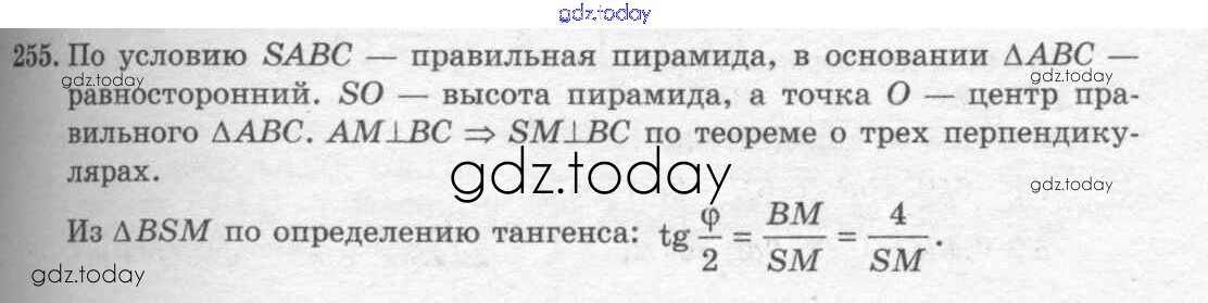 Ответы к Решение. Задачи 255 Учебнику по Геометрии для 10-11 класса Атанасян, Бутузов Базовый и углубленный уровень Просвещение, Просвещение 2015, 2023