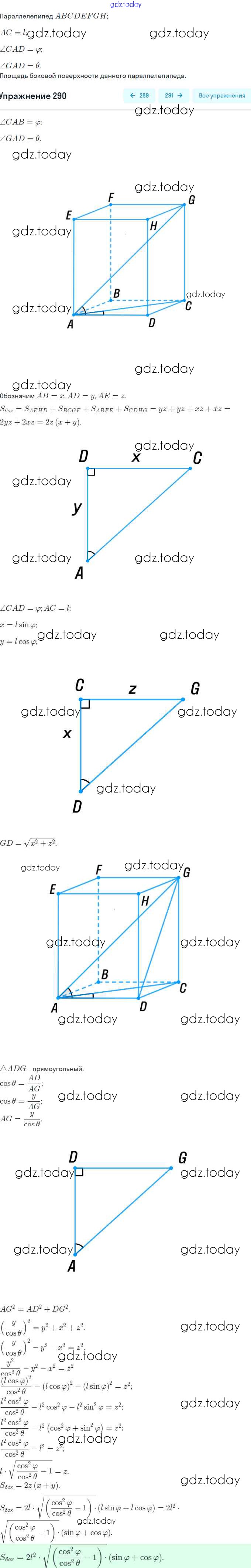 На страницах сайта gdz.today вы найдете учебный и вспомогательный материал, направленный на улучшения знаний школьной программы. ГДЗ - онлайн мир знаний Решение. Задачи 290 Учебнику по Геометрии для 10-11 класса Атанасян, Бутузов Базовый и углубленный уровень Просвещение, Просвещение 2015, 2023