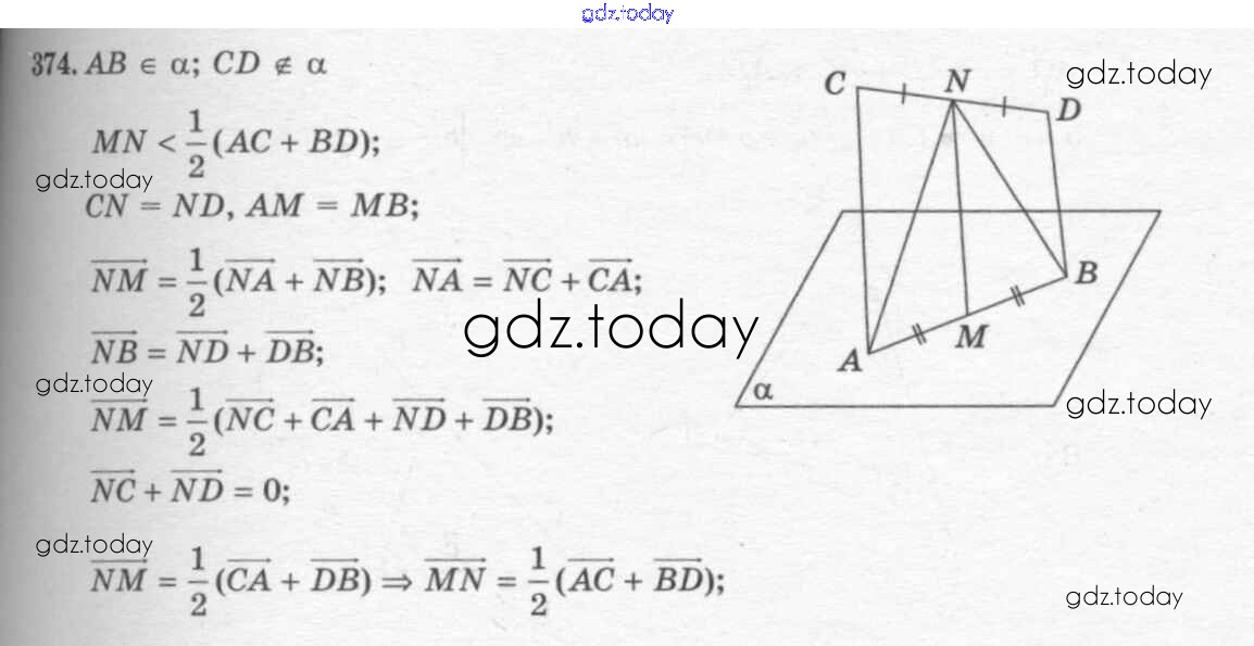 Ответы к Решение. Задачи 374 Учебнику по Геометрии для 10-11 класса Атанасян, Бутузов Базовый и углубленный уровень Просвещение, Просвещение 2015, 2023