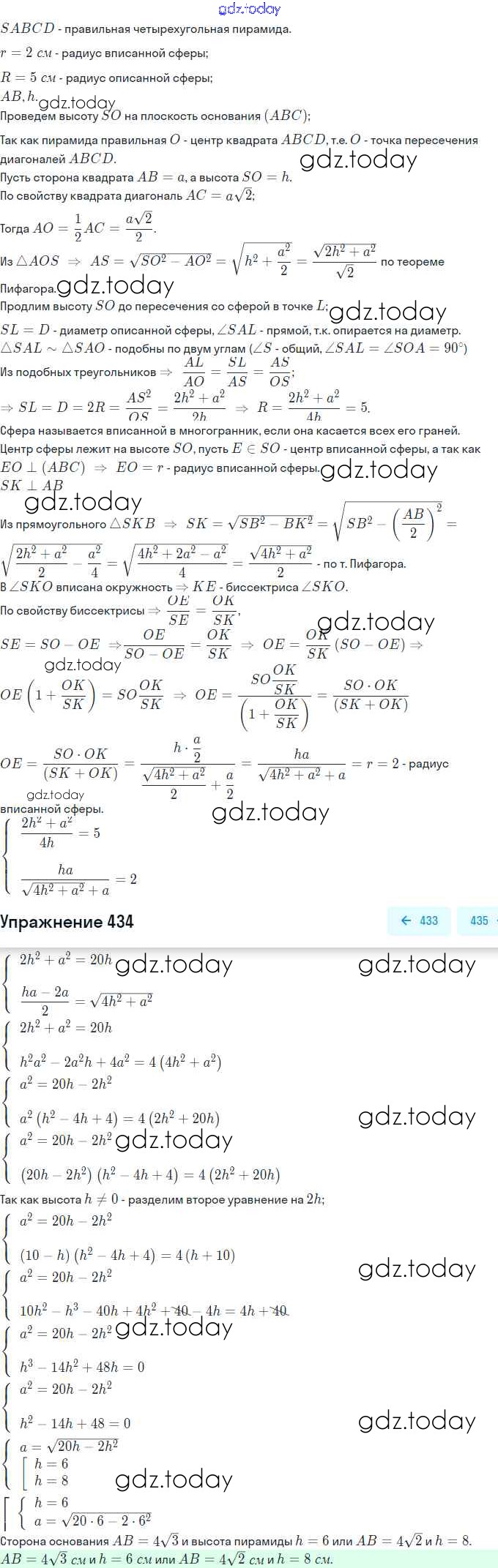 Ответы к Решение. Задачи 434 Учебнику по Геометрии для 10-11 класса Атанасян, Бутузов Базовый и углубленный уровень Просвещение, Просвещение 2015, 2023