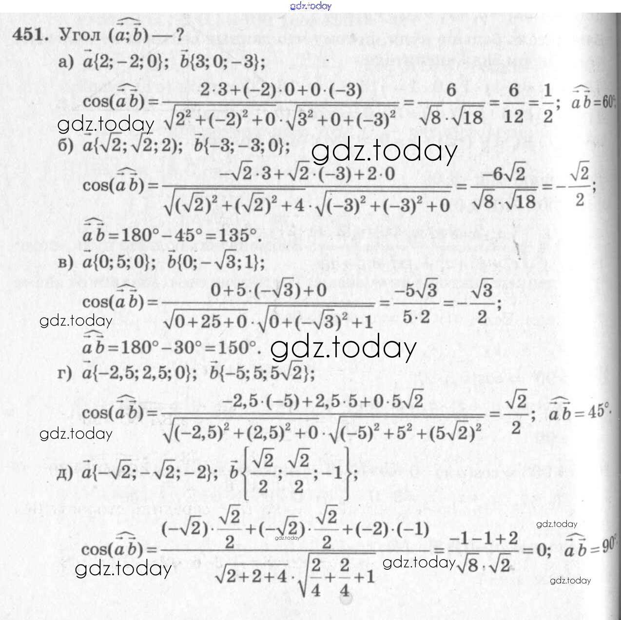 Ответы к Решение. Задачи 451 Учебнику по Геометрии для 10-11 класса Атанасян, Бутузов Базовый и углубленный уровень Просвещение, Просвещение 2015, 2023
