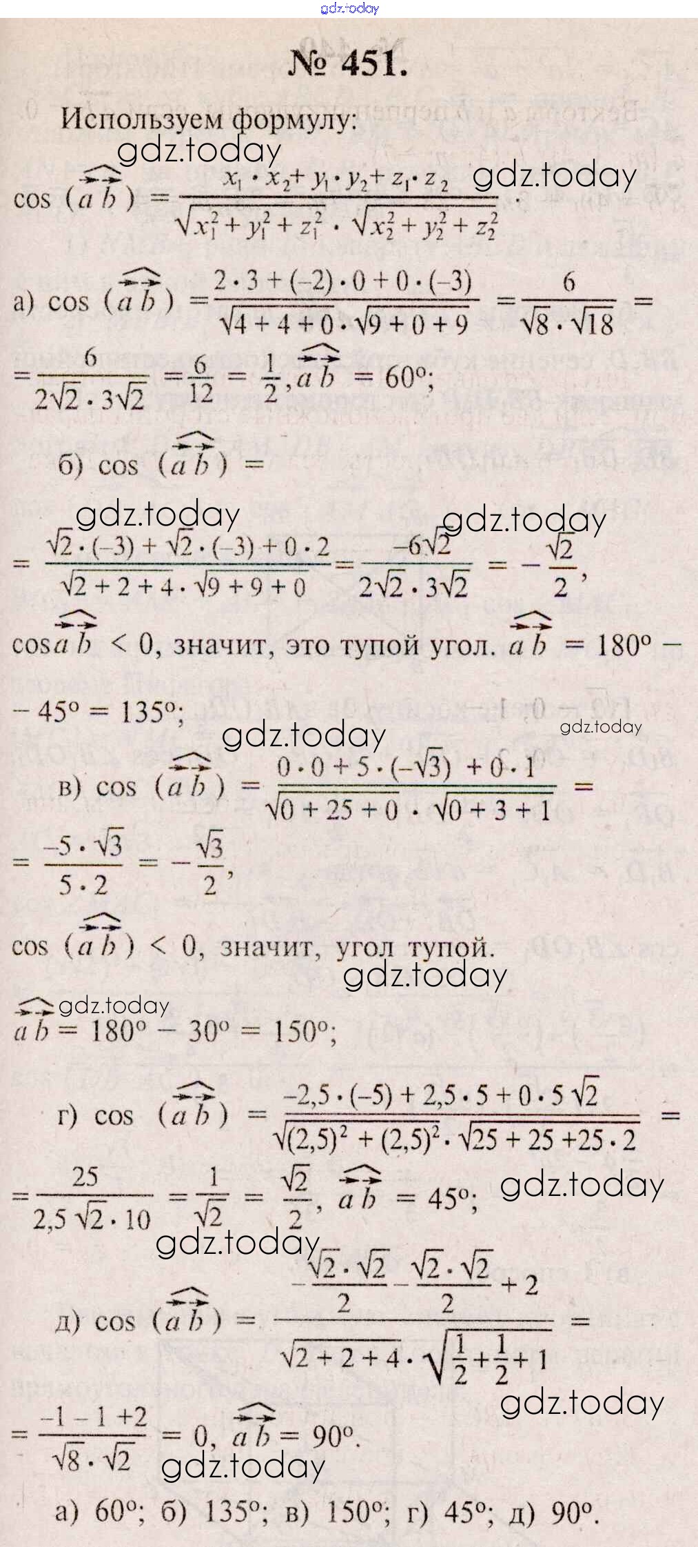 На страницах сайта gdz.today вы найдете учебный и вспомогательный материал, направленный на улучшения знаний школьной программы. ГДЗ - онлайн мир знаний Решение. Задачи 451 Учебнику по Геометрии для 10-11 класса Атанасян, Бутузов Базовый и углубленный уровень Просвещение, Просвещение 2015, 2023