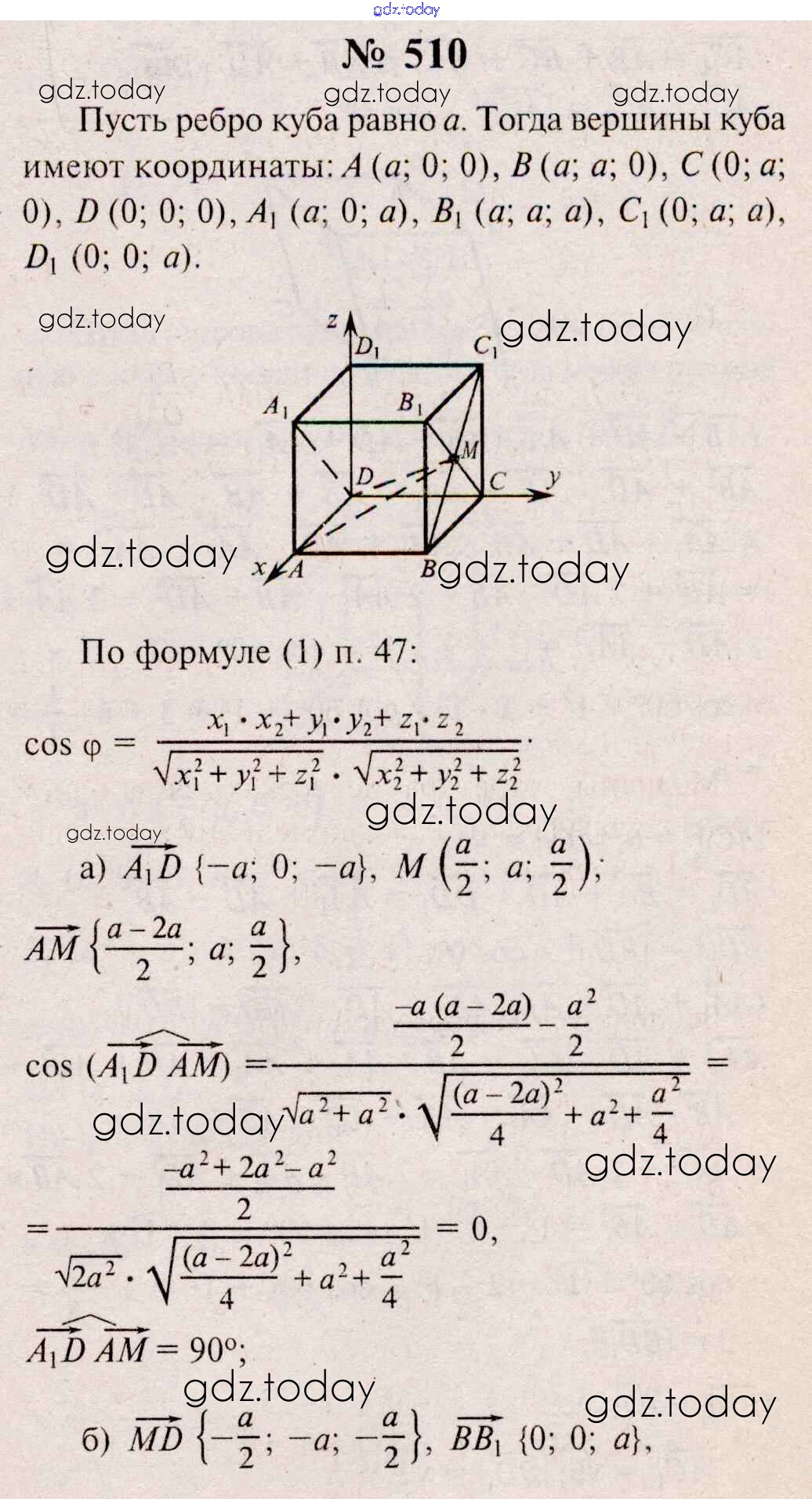 Ответы к Решение. Задачи 510 Учебнику по Геометрии для 10-11 класса Атанасян, Бутузов Базовый и углубленный уровень Просвещение, Просвещение 2015, 2023
