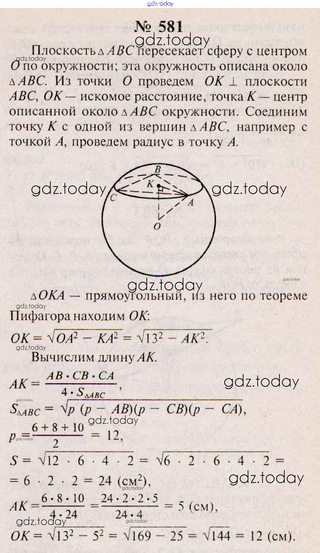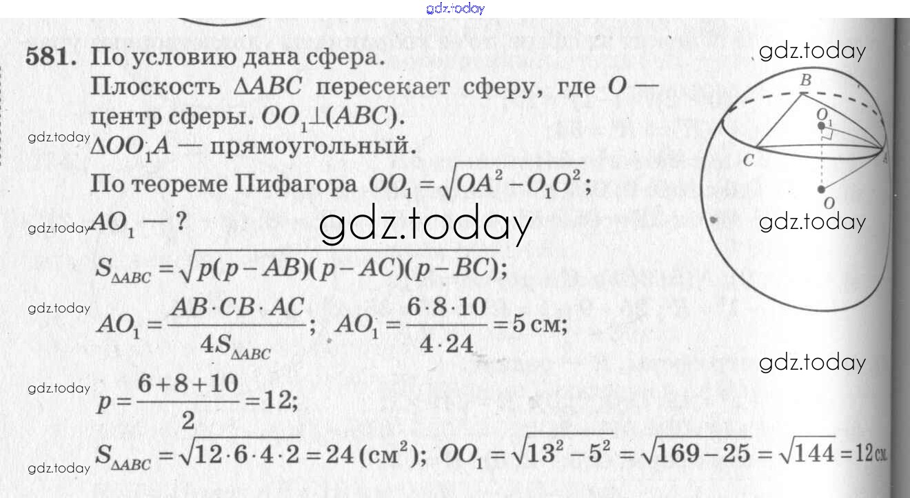 Ответы к Решение. Задачи 581 Учебнику по Геометрии для 10-11 класса Атанасян, Бутузов Базовый и углубленный уровень Просвещение, Просвещение 2015, 2023